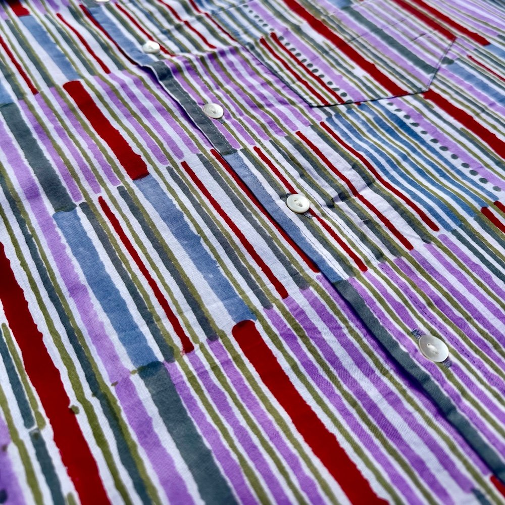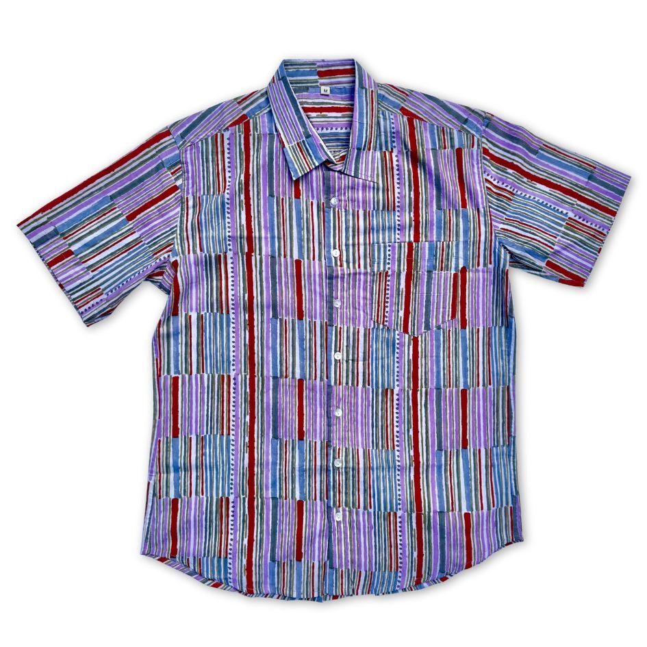 Cotton shirt hand printed by wood blocks. Natural dyes are used while dying the fabric. Due to them being printed by hand, small imperfections are present in the shirt. These bring the design to life and make each shirt one of a kind. When you wear adhukala, you are truly one of a kind.